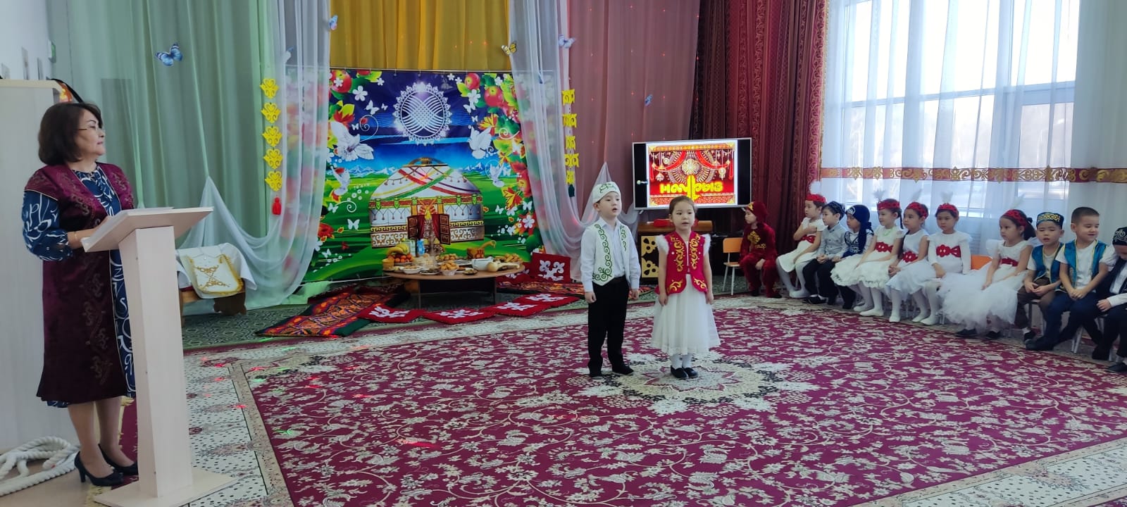2023 жылғы 17 наурызда бөбекжайда «Армысың, әз Наурыз!» атты Наурыз мерекесіне арналған ертеңгіліктер өтті. Қонаққа Қыдыр ата мен әже, Алдар көсе кейіпкерлері келді. Балалар «Балаға ат қою», «Бесікке салу» салт-дәстүрімен танысып, ұлтық ойын-асық ойынын ойнады. Ән шырқап, би биледі. Қазақтың ұлттық тағамдарынан дастарқан жайылды.Балалар мереке көтеріңкі көңіл-күй сыйлап, көктем туралы, Ұлыстың ұлы күні наурыз мерекесі туралы білімдерін кеңейтті.