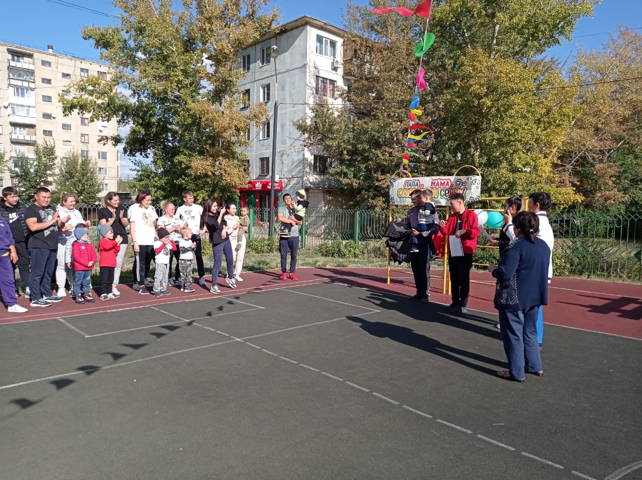 Спорттық мереке жақсы өтті! Командалар мақтау қағаздарымен марапатталды, ал қатысушылар мен көрермендер керемет сергектік пен жағымды эмоциялар Біздің балабақшада "Әке, ана, мен-спорттық отбасы" көңілді және серпінді іс- шара өтті. Спорттық жарыстарға даярлық және жоғары топ тәрбиеленушілерінің отбасылары қатысты. Әр команда 3 адамнан тұрды: ана, әке және бала.