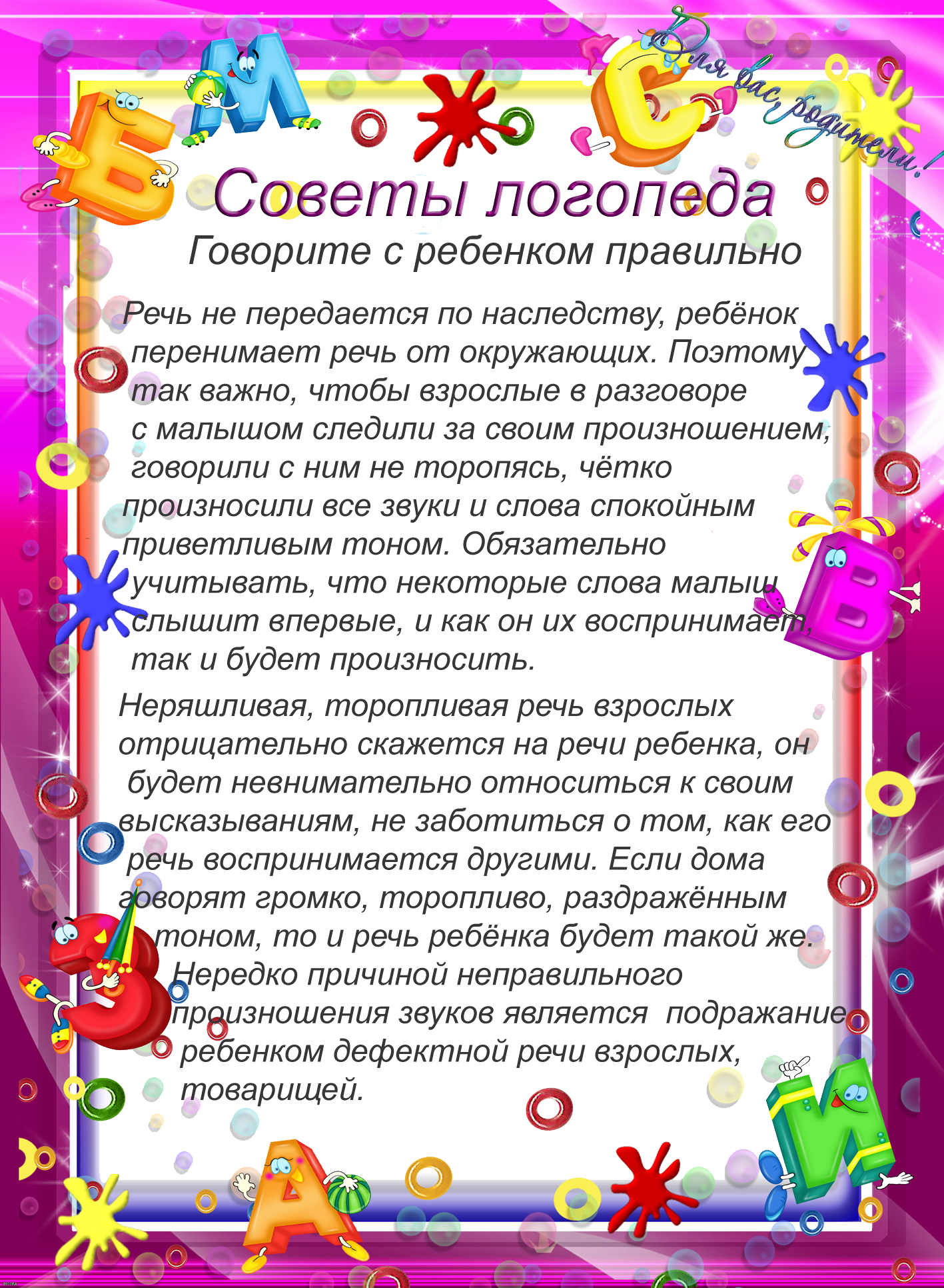 1. Неправильная речь окружающих ребёнка людей или недостаточное с их стороны внимание к его речи.
